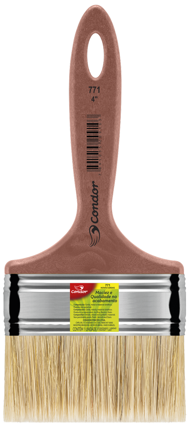 Com cerdas brancas suaves e macias. Durabilidade e qualidade na aplicação. INDICAÇÃO DE PINTURA: Verniz, Stain e PVA.