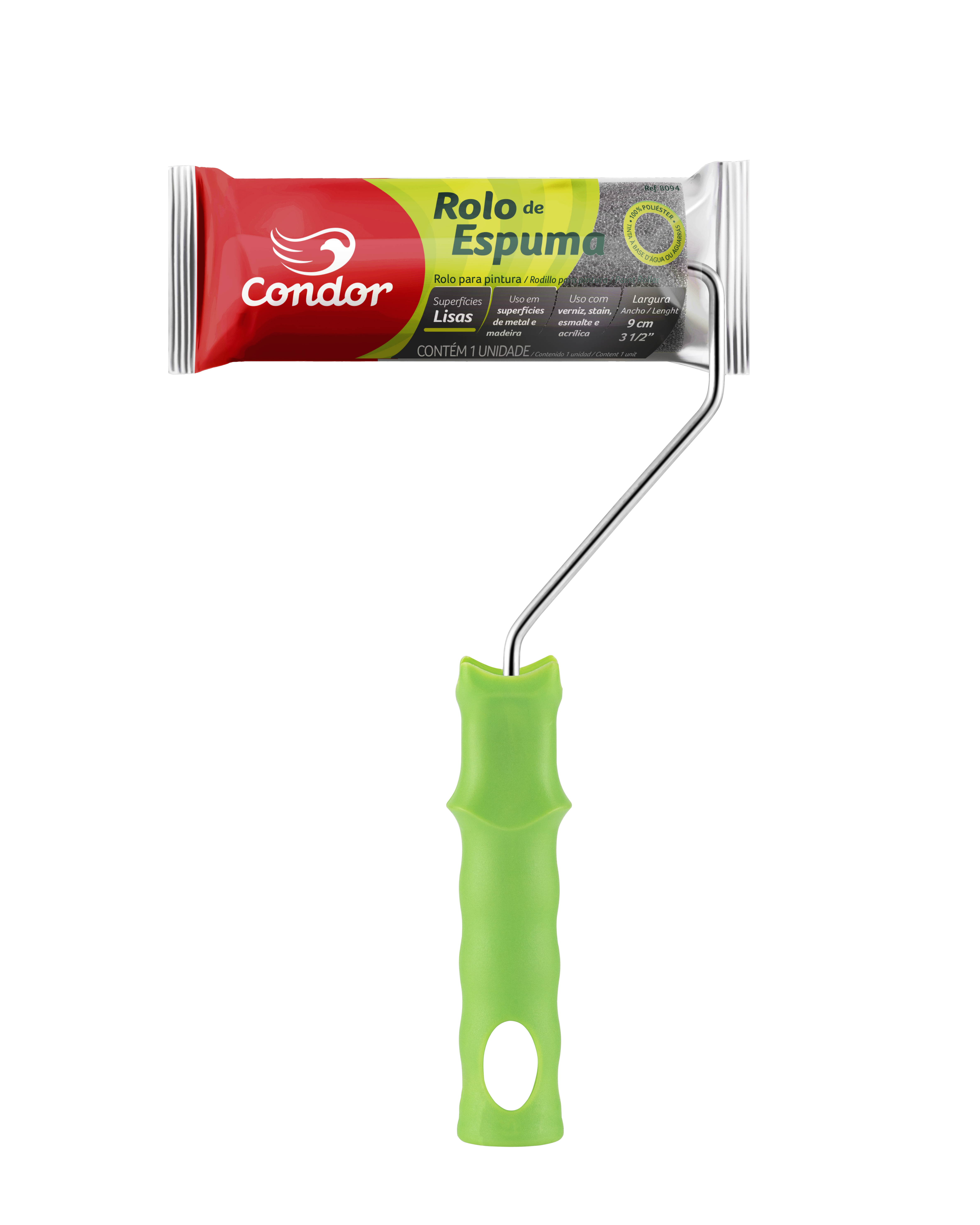 Espuma 100% poliéster. Tintas à base d'água ou aguarrás. USO COM: Verniz, stain, esmalte e acrílica. USO EM: Superfícies de metal e madeira.
