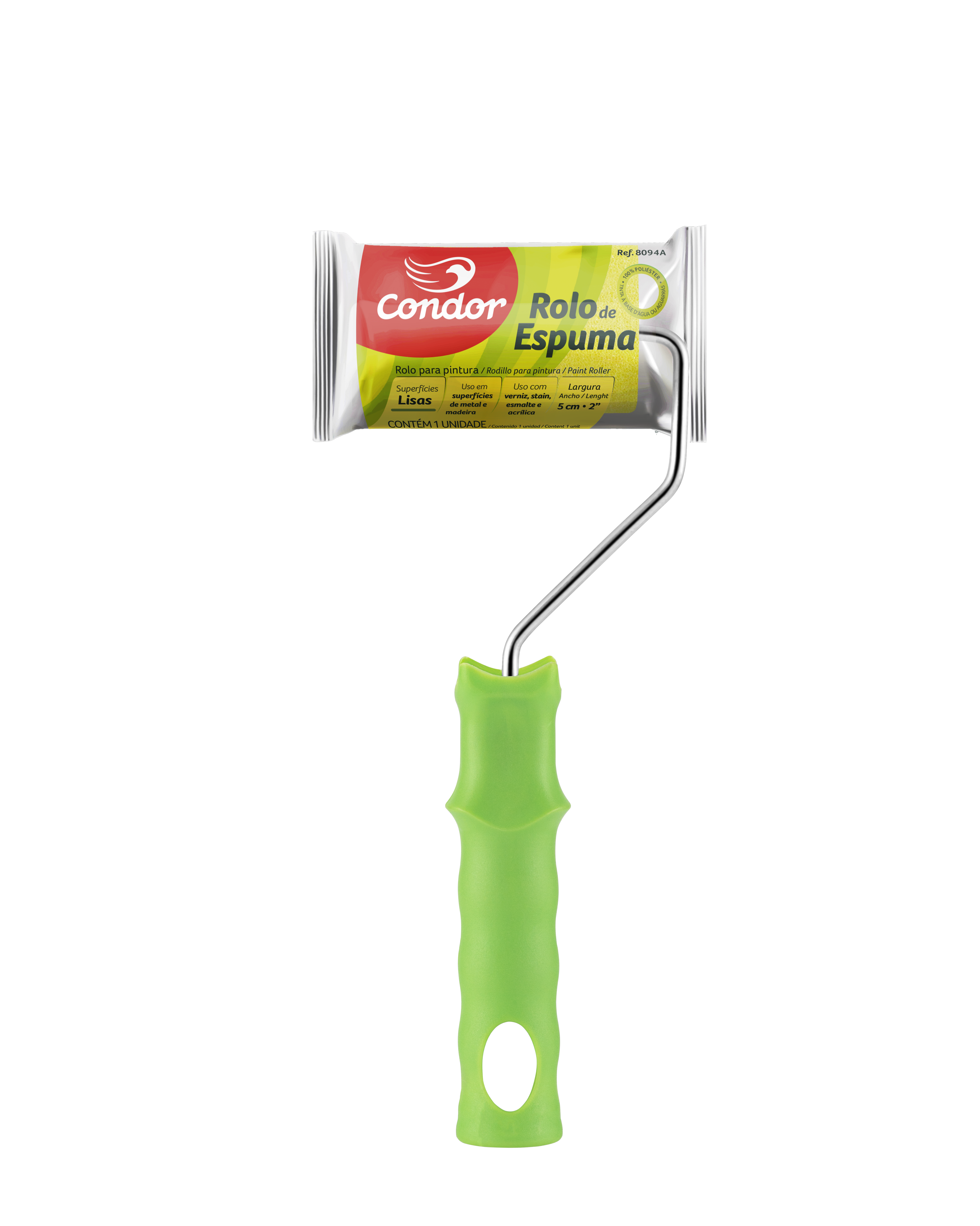 Espuma 100% poliéster. USO COM: Verniz, stain, esmalte e acrílica. Tintas à base d'água ou aguarrás. USO EM: Superfícies de metal e madeira.