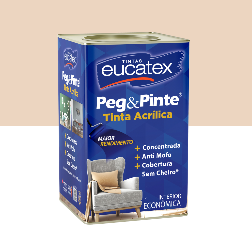 Peg & Pinte Tinta Acrílica Econômica, é uma tinta acrílica na categoria Econômica de boa performance, com mais cobertura, mais antimofo, e mais concentrado. Fácil de aplicar e ideal para uso interno em alvenaria (paredes e tetos).