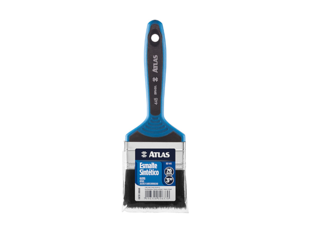 A Trincha Esmalte Profissional Atlas 3" Ref. 445 é ideal para pintura de grandes áreas com esmalte ou verniz. Cerdas de alta qualidade e cabo confortável.