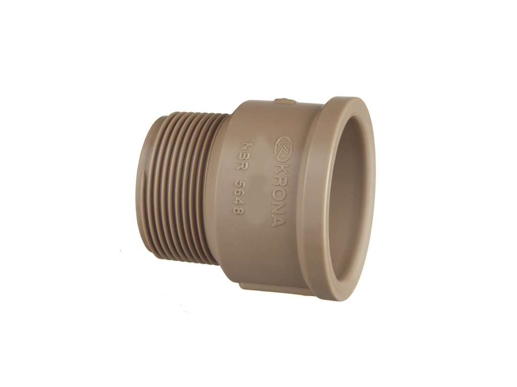 Peça de conexão hidráulica Krona, recomendada para sistemas de água fria. Produzida em PVC marrom de alta resistência, facilita a montagem com vedação confiável. Tamanho: 25mm x 3/4"
