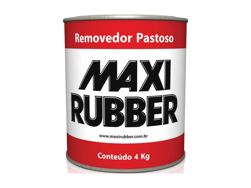 Removedor de tinta Maxi Rubber, peso 4kg, consistência pastosa. Recomendado para oficinas, indústrias e reformas de grande porte, com ação eficaz sobre múltiplas camadas.