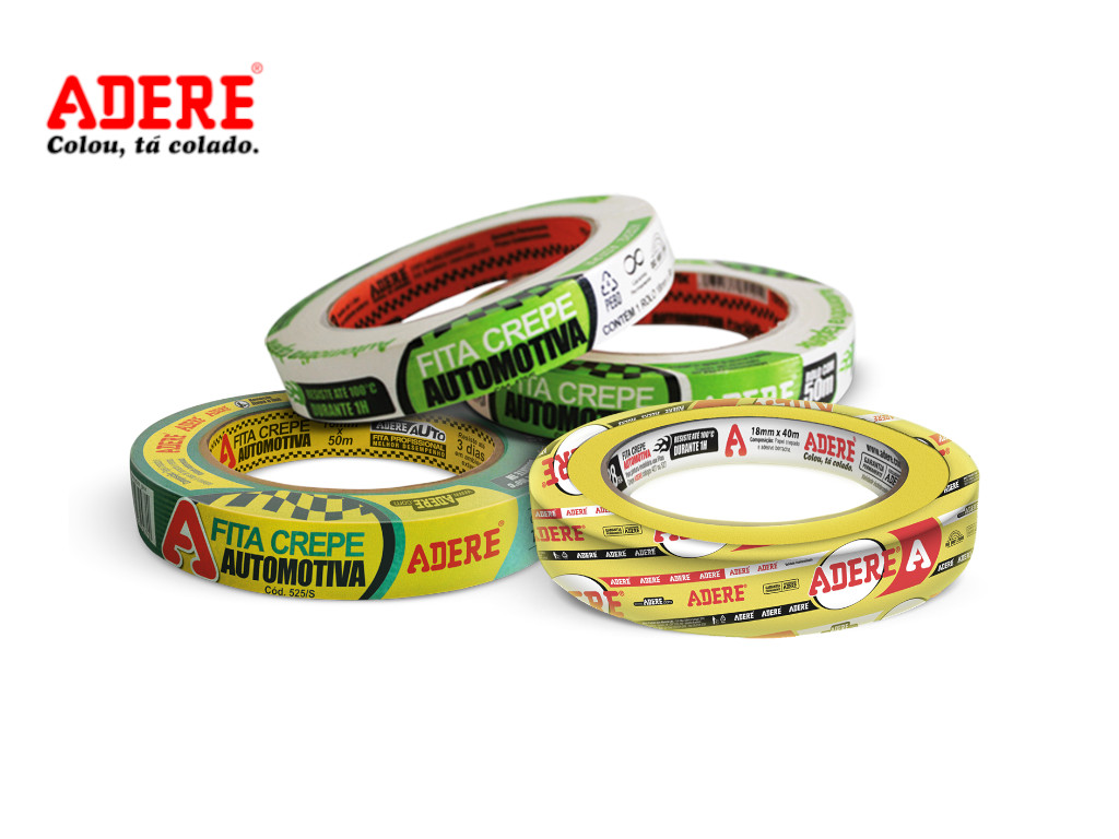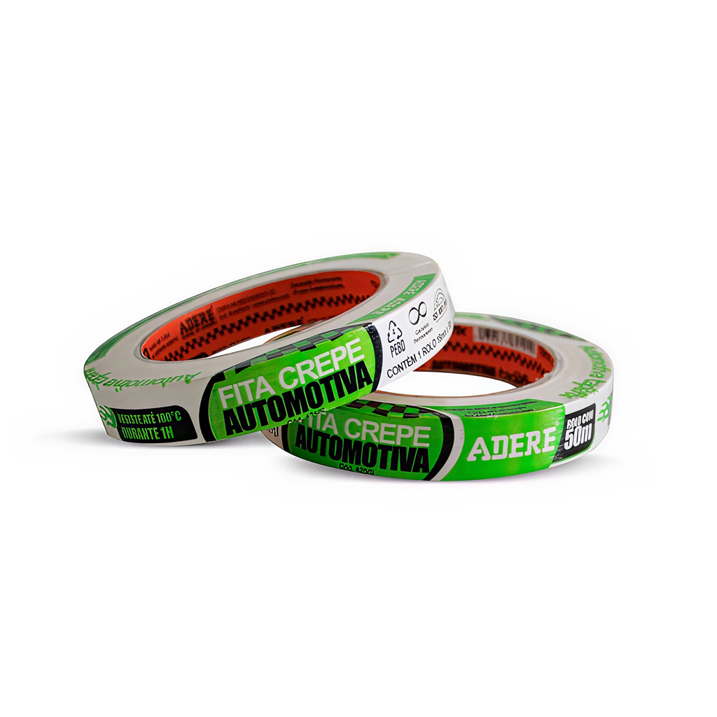 Fita Crepe Adere 18 mm x 50 m (ref. 425). Ideal para demarcações, proteção de rodapés e juntas em pintura, fácil remoção sem deixar resíduos.