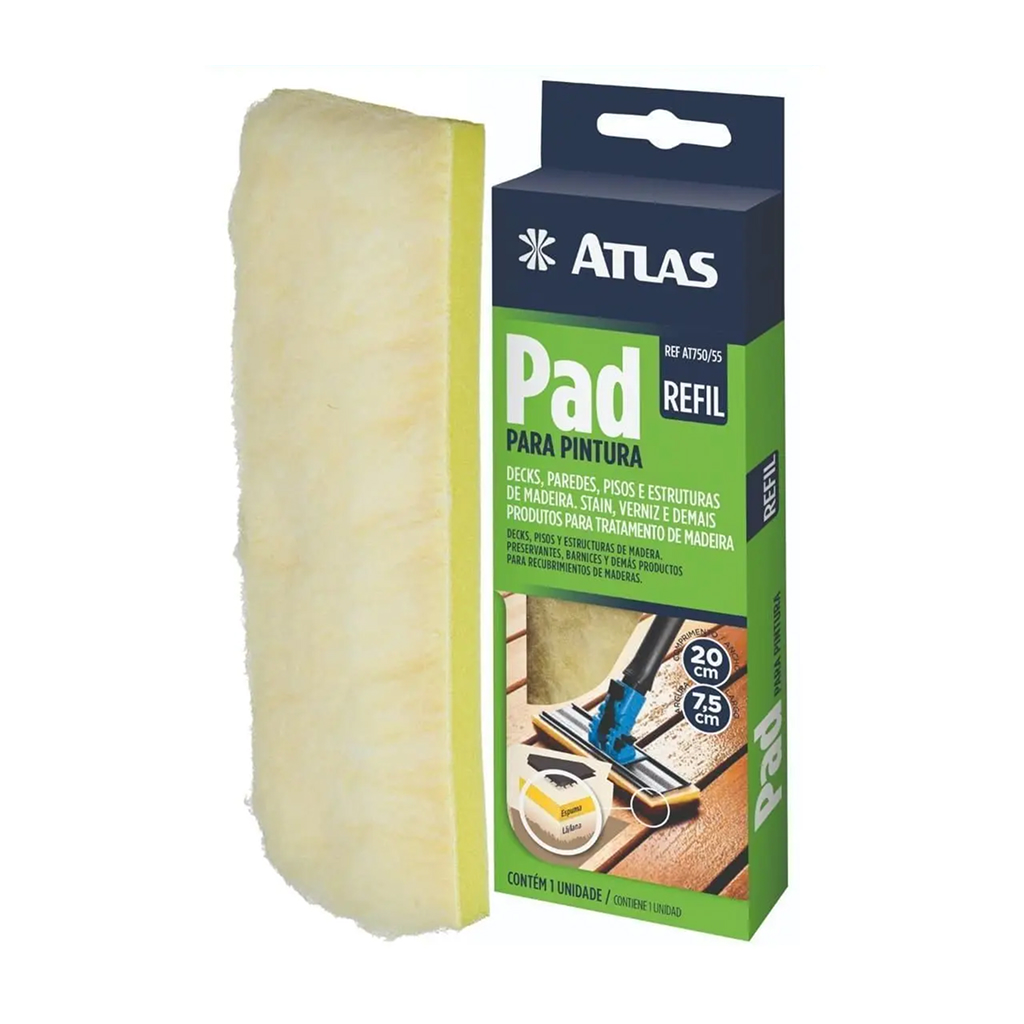 Refil compatível com pad Atlas modelo AT750/55. Recomendado para reaplicação de stain em superfícies de madeira, prolongando a vida útil do aplicador original.