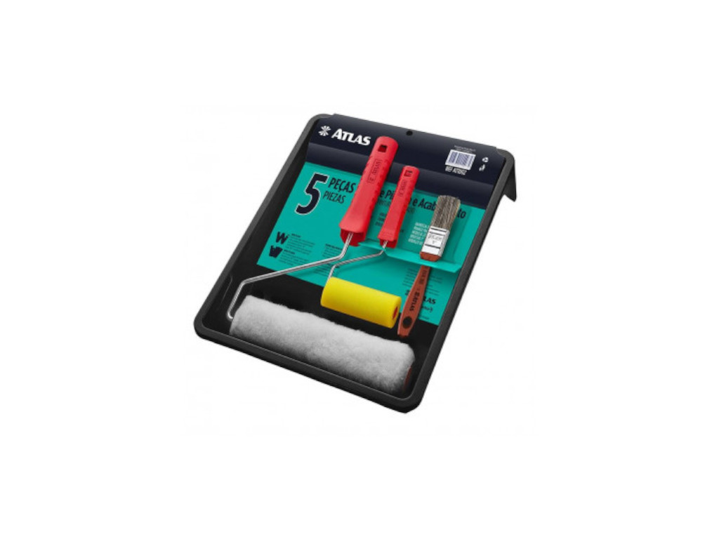 Contém rolo, garfo, bandeja, pincel e espátula — solução completa para serviço de pintura profissional.