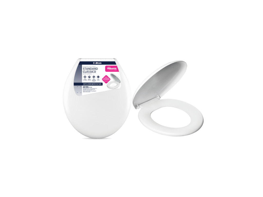 Assento sanitário da marca Atlas, modelo Soprano 1060/2, cor branca. Fabricado em polipropileno, compatível com bacias ovais convencionais. Fácil instalação, tampa com bom encaixe e durabilidade.