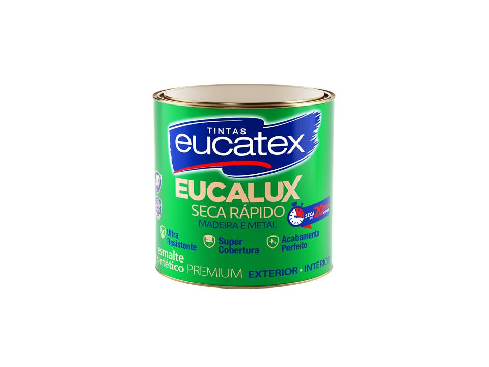 Esmalte fosco Eucalux na cor preta, embalagem de 900ml. Indicado para superfícies de madeira ou metal, com acabamento elegante e sem brilho.