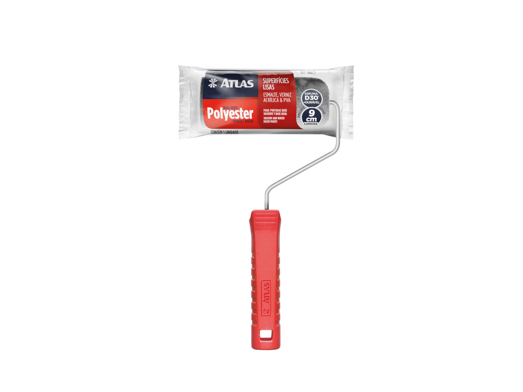 Modelo 406/9 da Atlas, rolo de espuma cinza ideal para pintura com esmaltes e vernizes em portas, móveis e superfícies lisas.