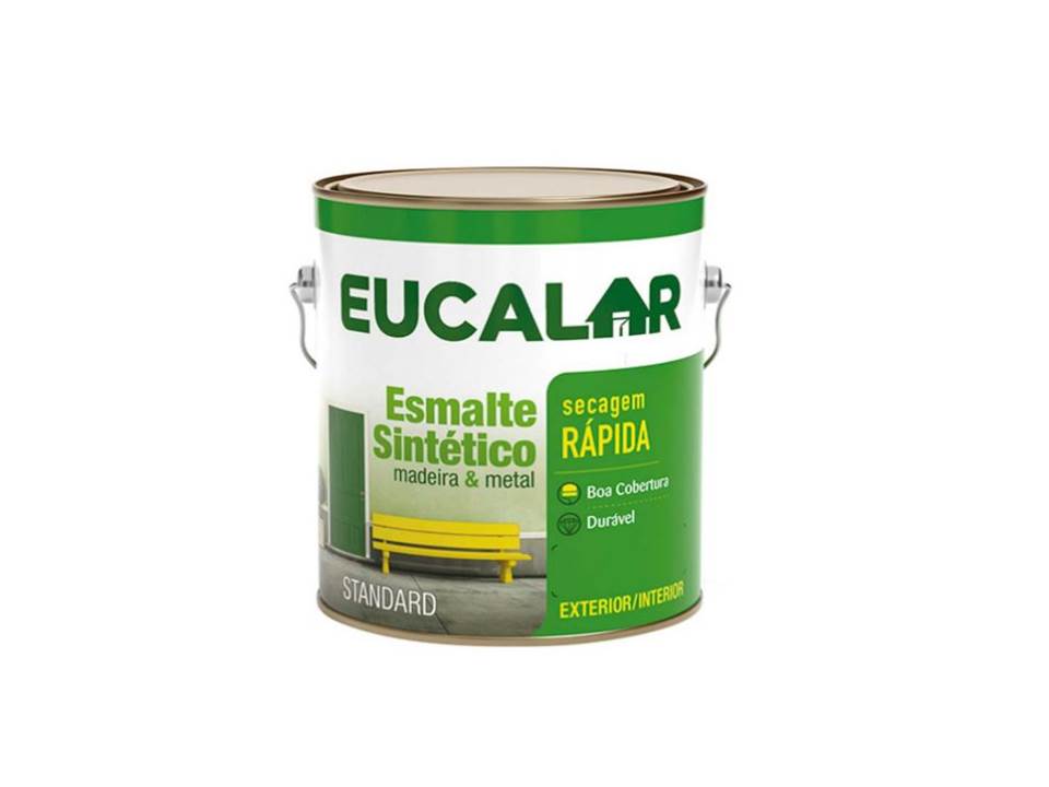 O Esmalte Sintético Eucalar Preto 3,6L é indicado para proteção e decoração de superfícies metálicas, de madeira ou alvenaria. Alta durabilidade.