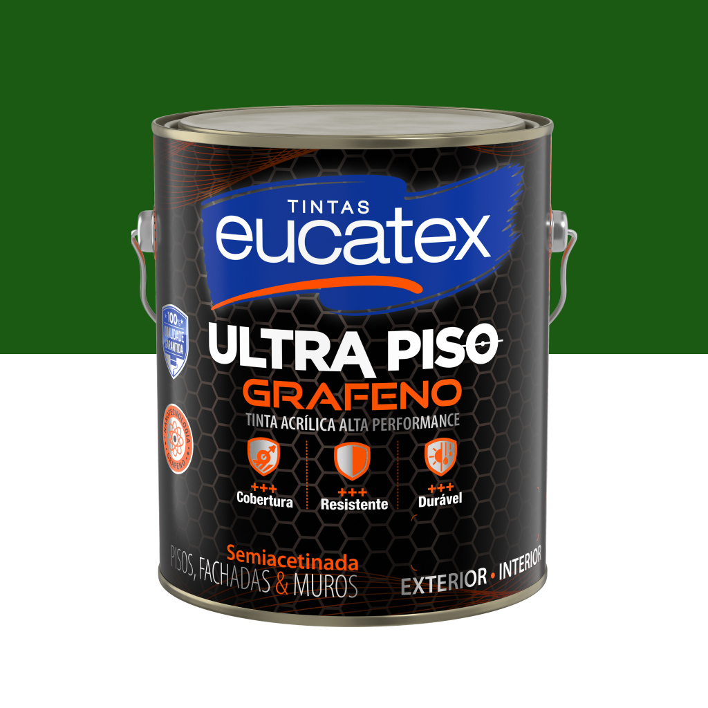Eucatex Ultra Piso Grafeno é uma ultra tinta acrílica para pisos cimentados, aditivada com nova tecnologia grafeno. a nanotecnologia grafeno atribui ao produto maior resistência, alta aderência, super durabilidade, possuindo ainda acabamento semiacetinado que reduz a pega de sujeira.