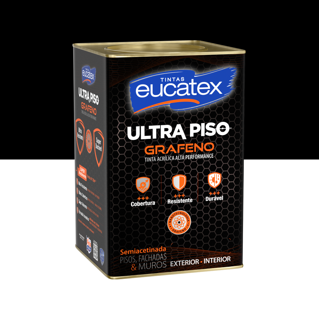 Eucatex Ultra Piso Grafeno é uma ultra tinta acrílica para pisos cimentados, aditivada com nova tecnologia grafeno. a nanotecnologia grafeno atribui ao produto maior resistência, alta aderência, super durabilidade, possuindo ainda acabamento semiacetinado que reduz a pega de sujeira.