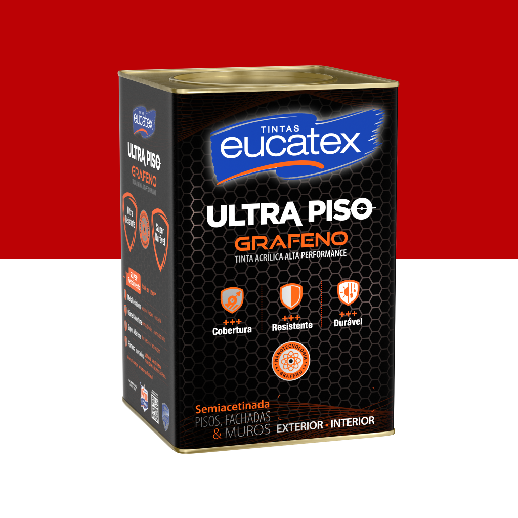 Eucatex Ultra Piso Grafeno é uma ultra tinta acrílica para pisos cimentados, aditivada com nova tecnologia grafeno. a nanotecnologia grafeno atribui ao produto maior resistência, alta aderência, super durabilidade, possuindo ainda acabamento semiacetinado que reduz a pega de sujeira.