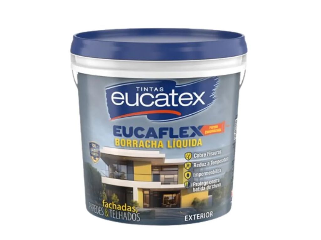 Borracha líquida Eucaflex 4 kg, branca, indicada para lajes, calhas e telhados. Produto elástico, de alta aderência e durabilidade, resistente aos raios UV.