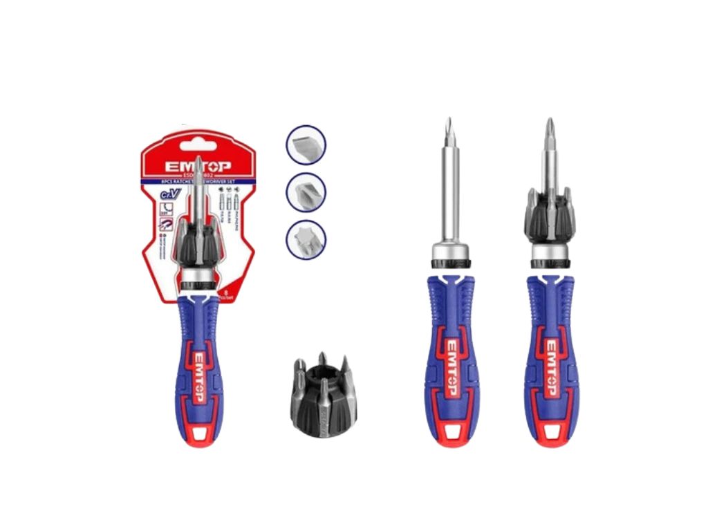 jogo chave fenda com catraca emtop 7 em 1
