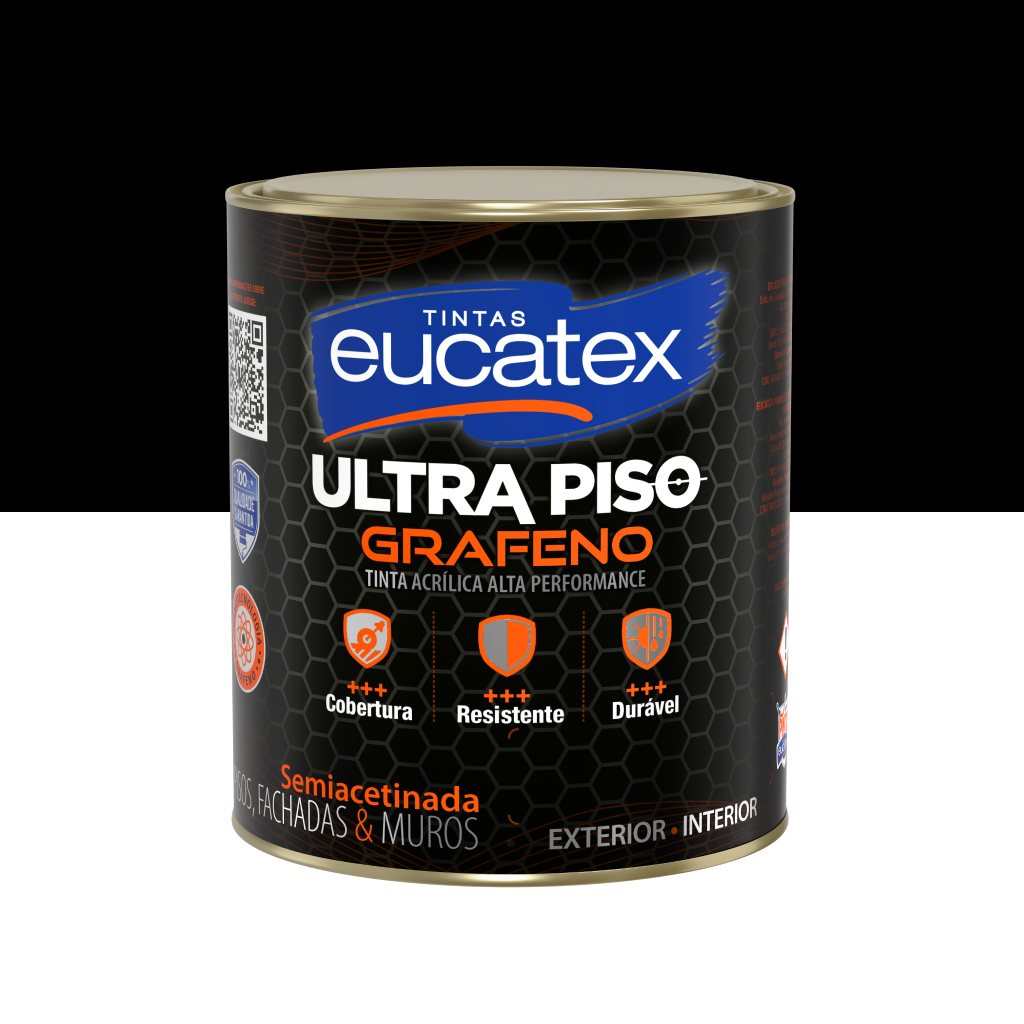Eucatex Ultra Piso Grafeno é uma ultra tinta acrílica para pisos cimentados, aditivada com nova tecnologia grafeno. a nanotecnologia grafeno atribui ao produto maior resistência, alta aderência, super durabilidade, possuindo ainda acabamento semiacetinado que reduz a pega de sujeira.